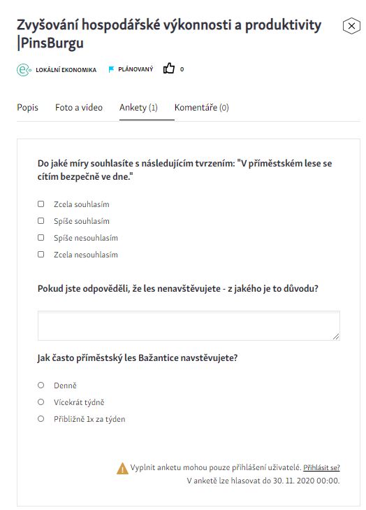 Jak aktivně zapojit obyvatele vašeho města do rozhodování o podobě konkrétního projektu? Co takhle krátký (nebo i delší) dotazník? V nejnovější aktualizaci se prostředí pro tvorbu anket výrazně zjednodušilo, navíc přibyla možnost si výsledky každého průzkumu vyexportovat a podrobně vyhodnotit.